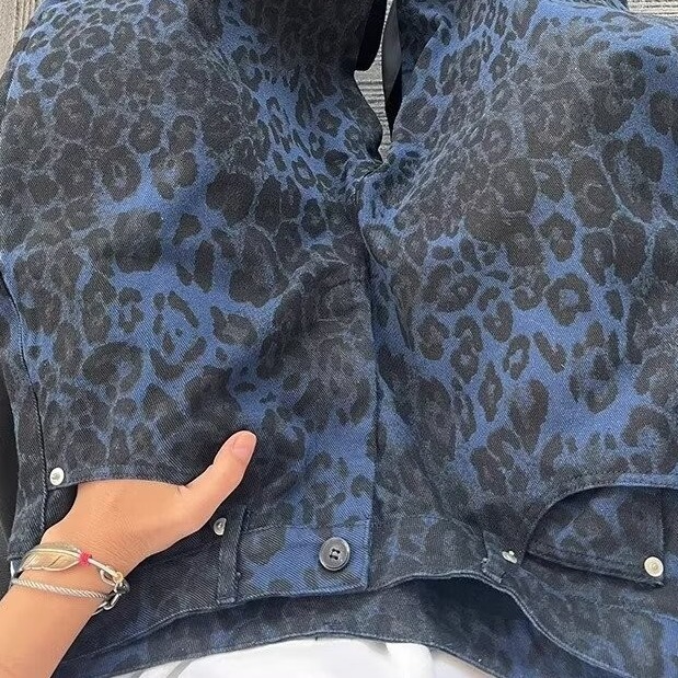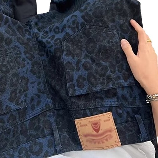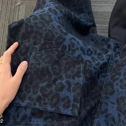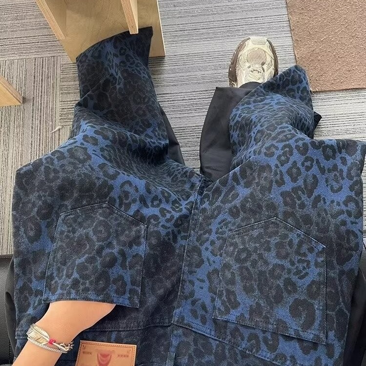 American Leopard Print Jeans Men’s 2024 Vintage Heavy Washed Canvas Green Tooling Casual Pants Men’s Ins Loosen