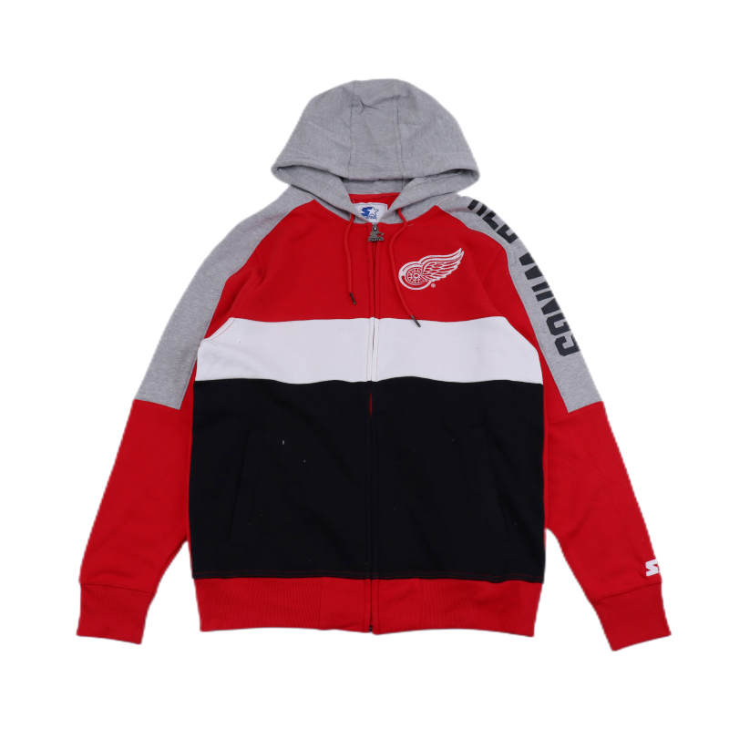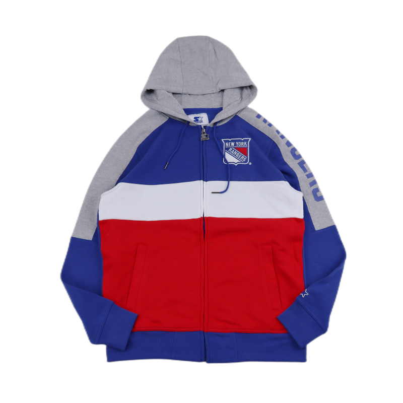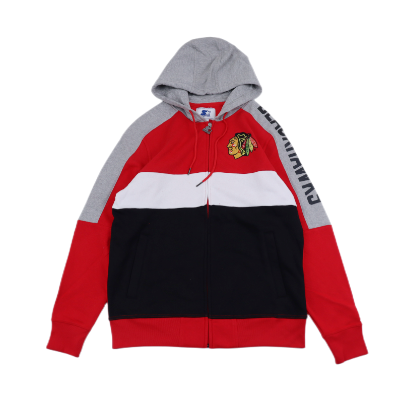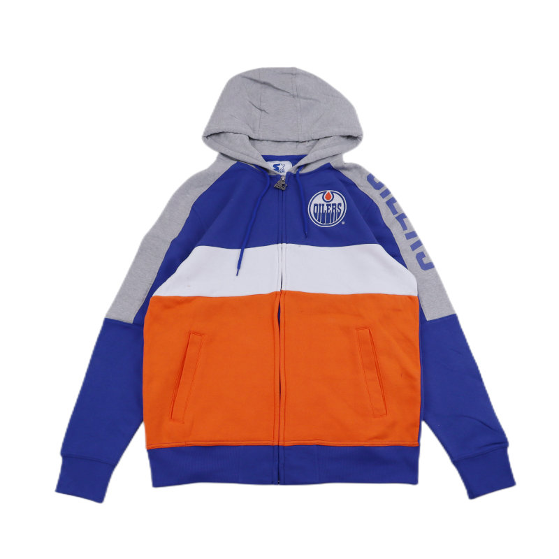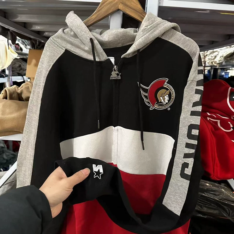 American men’s color block zipper cardigan sports hooded sweatshirt