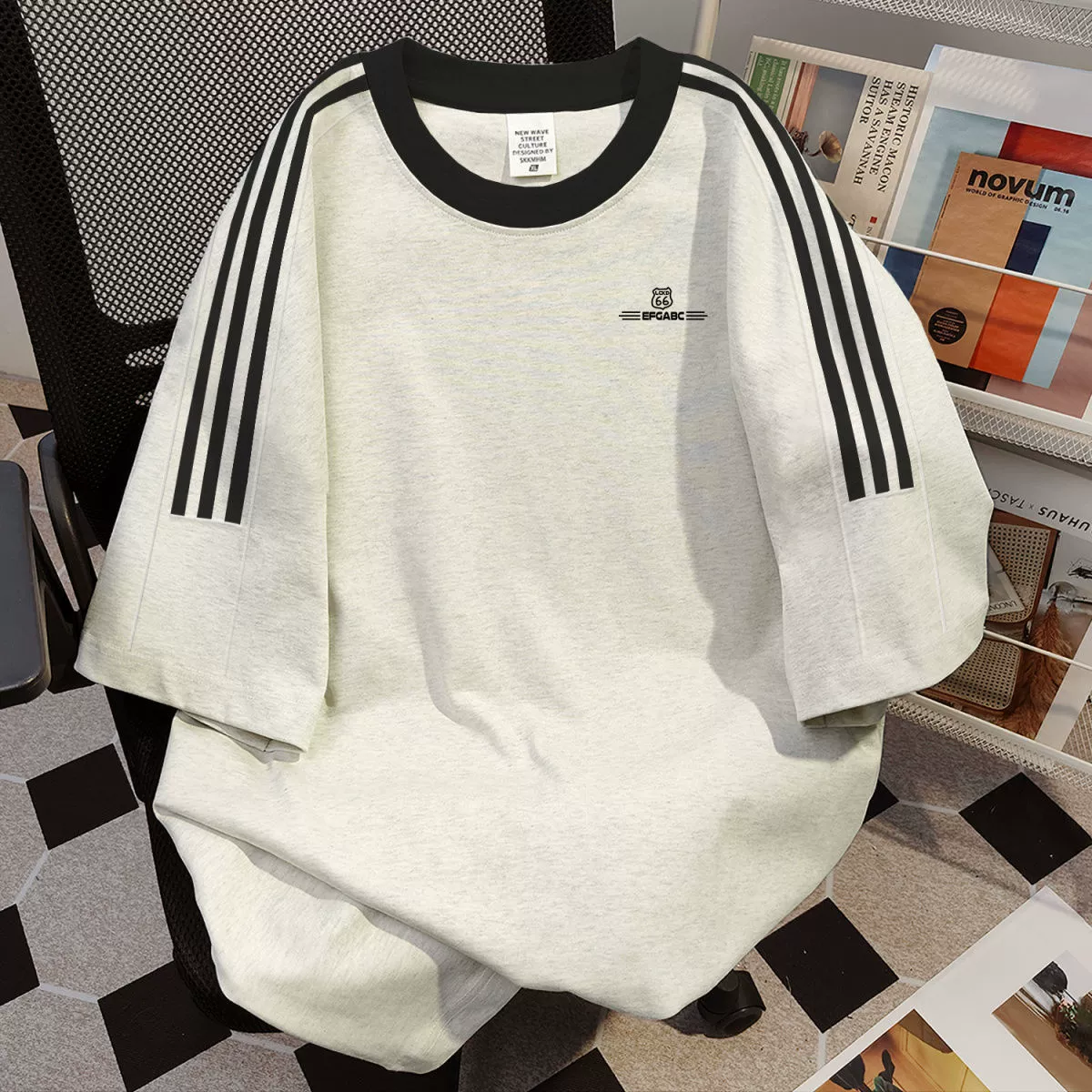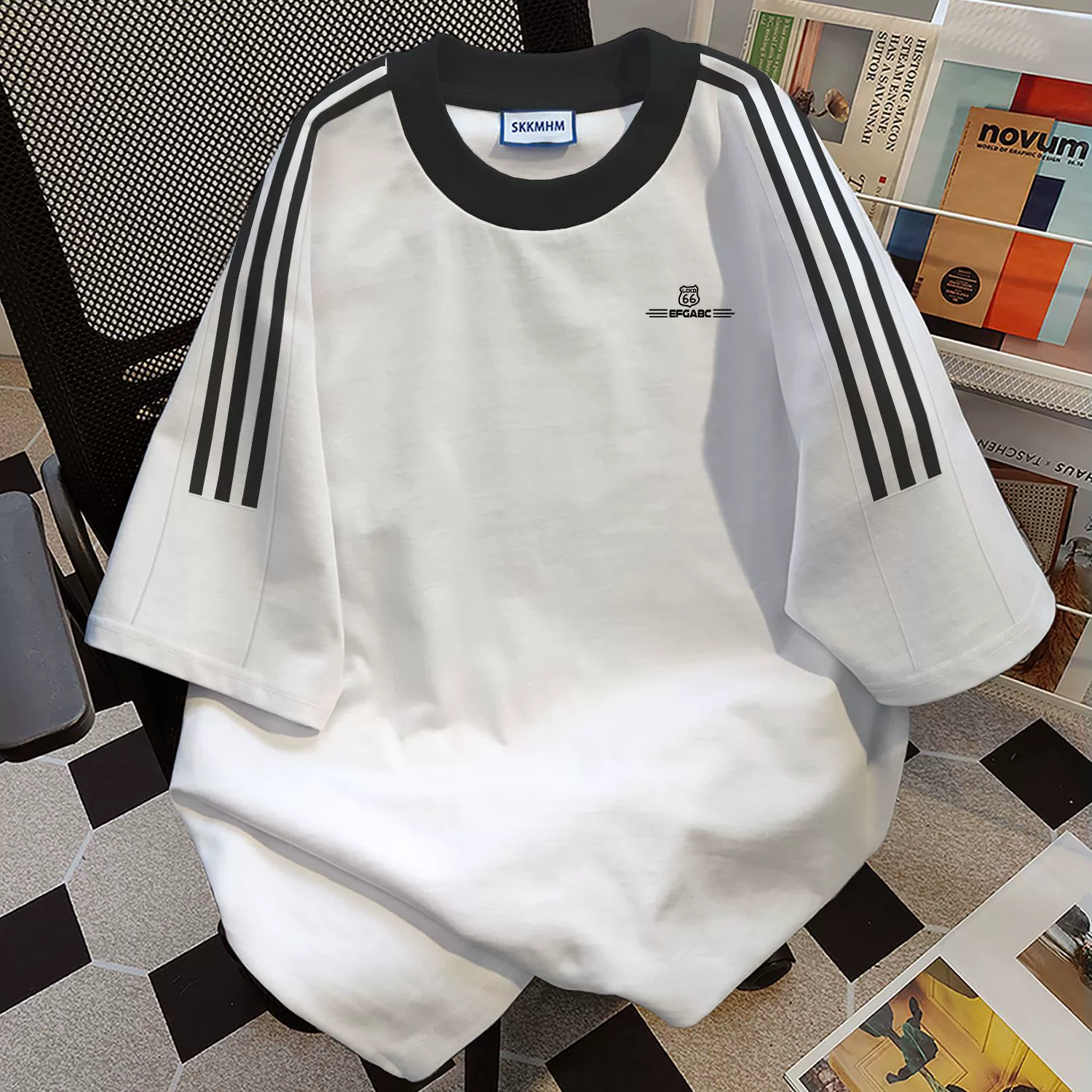 American pure cotton niche design summer spliced ​​short-sleeved T-shirt women's three-stripe letter printed loose ins top