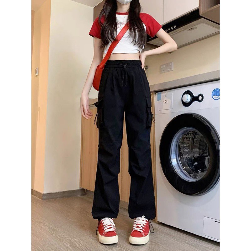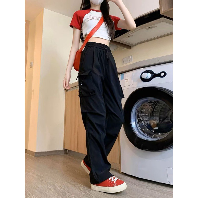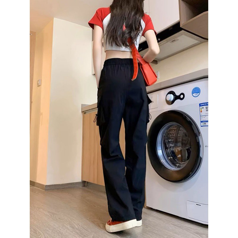 | nameOriginal | American quick-drying overalls women's spring and autumn 2024 new small black straight wide leg casual sports pants |