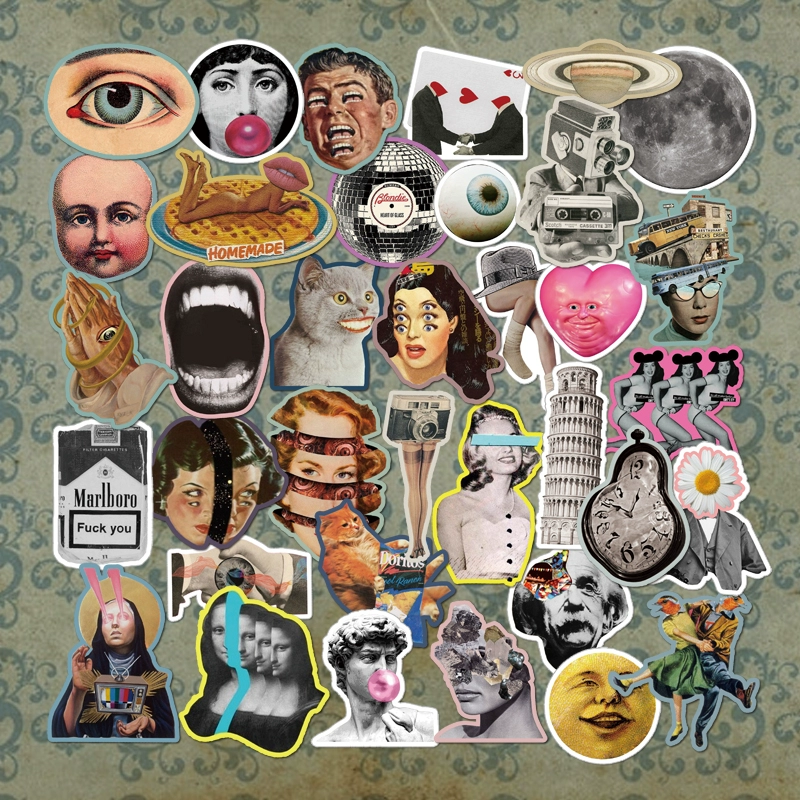 | nameOriginal | American retro bad taste spoof waterproof suitcase stickers waterproof computer notebook refrigerator bicycle stickers |