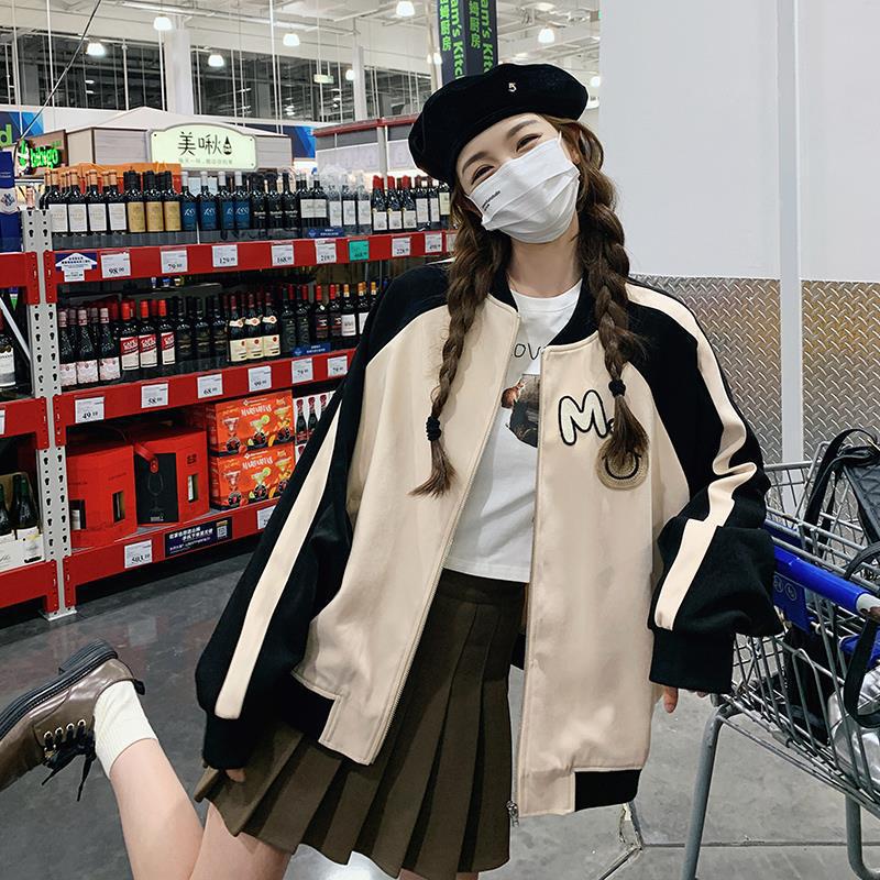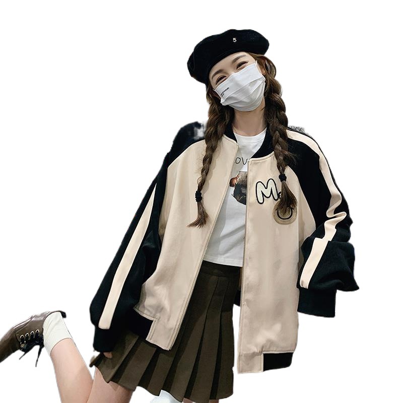 American retro baseball jacket women’s autumn 2024 New Design loose casual age-reducing color matching jacket top