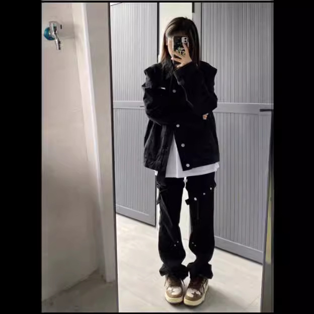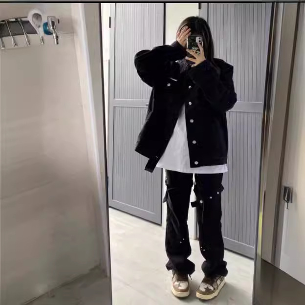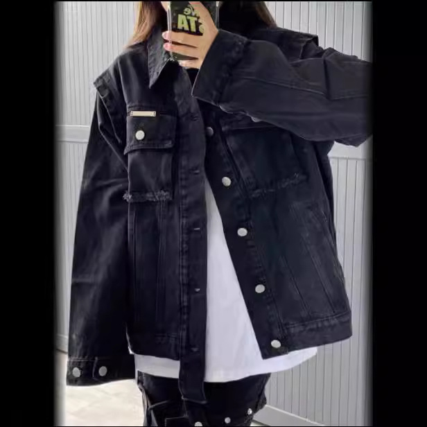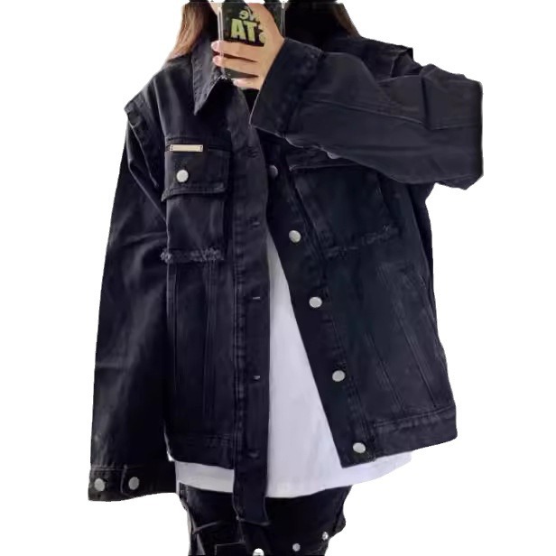 American retro black Denim coat for women Spring New plus size chubby girl loose jacket student coat ins fashion