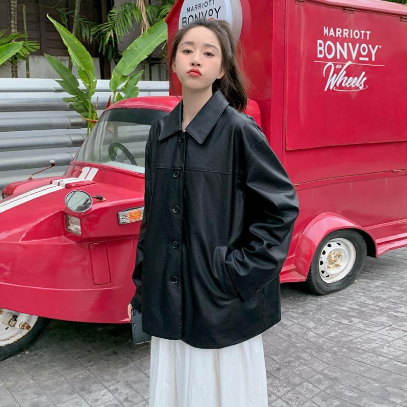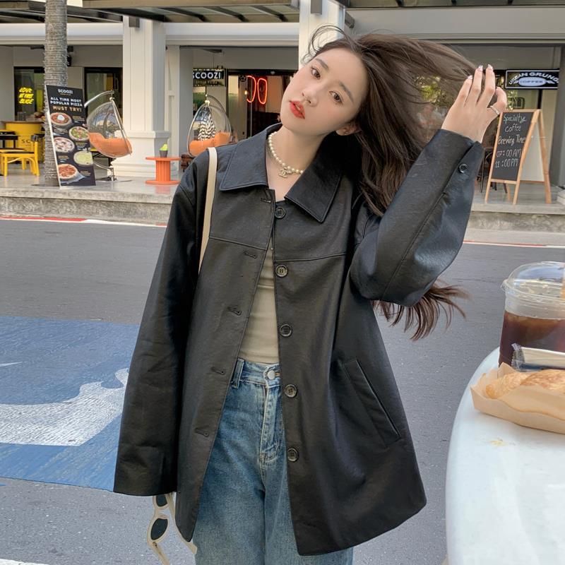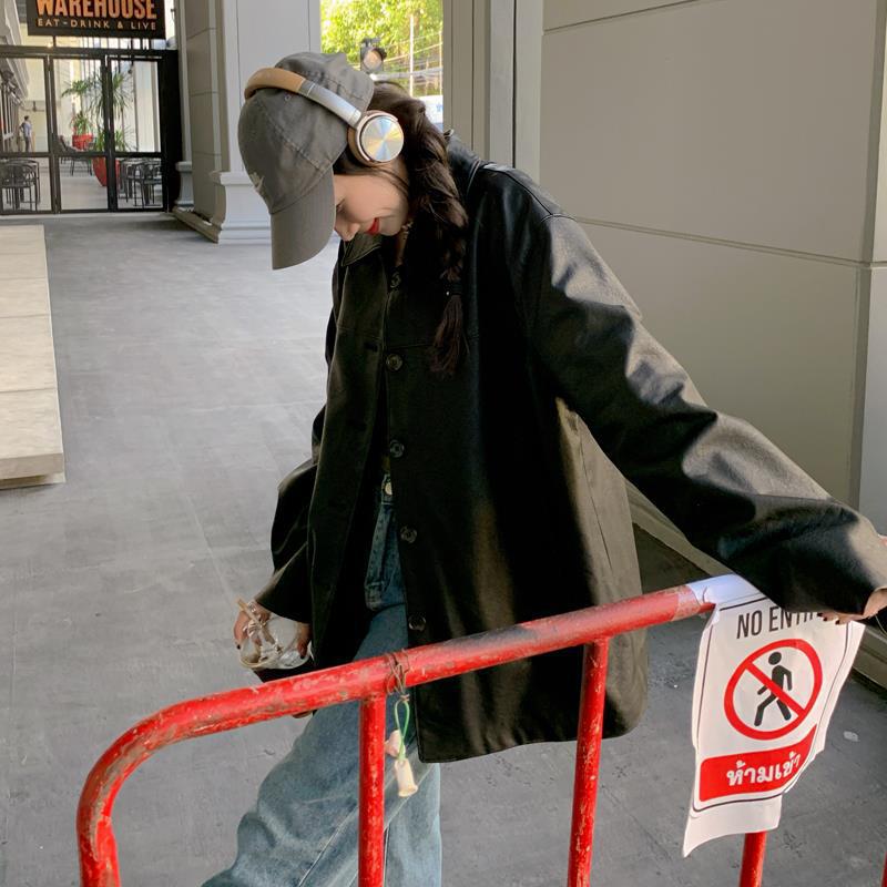 | nameOriginal | American retro black leather coat for women Spring and Autumn 2024 new fashionable casual PU leather motorcycle jacket top |