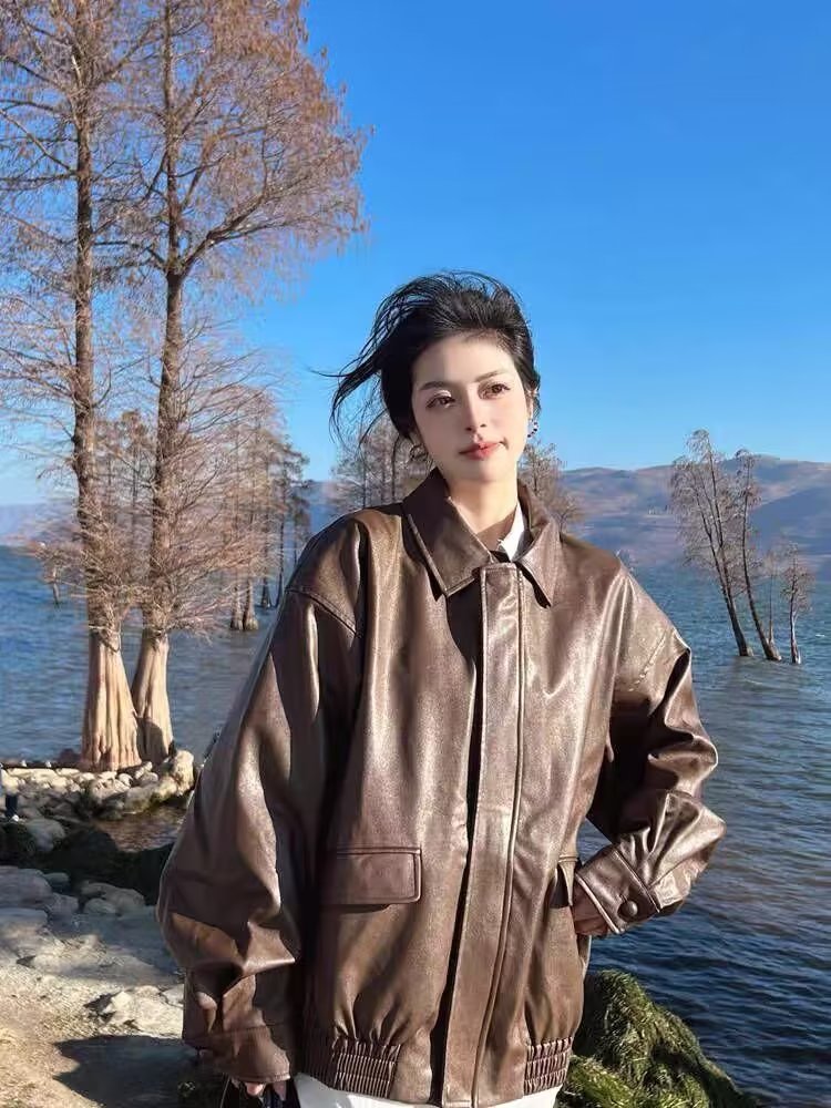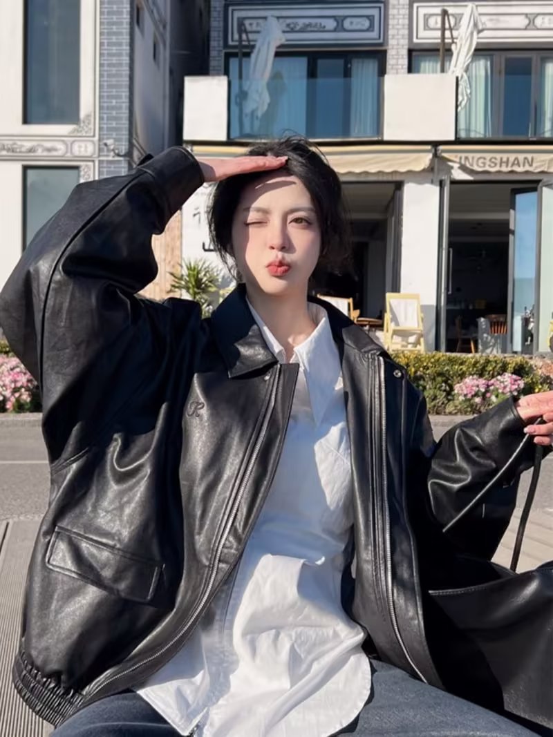 | nameOriginal | American Retro Black PU Leather Coat Women's Spring and Autumn Fried Street Small Loose Bike Suit Leather Jacket Top |