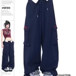 American retro blue pear-shaped cuffed overalls