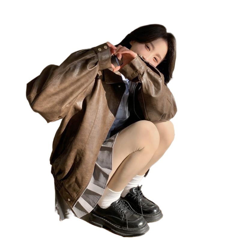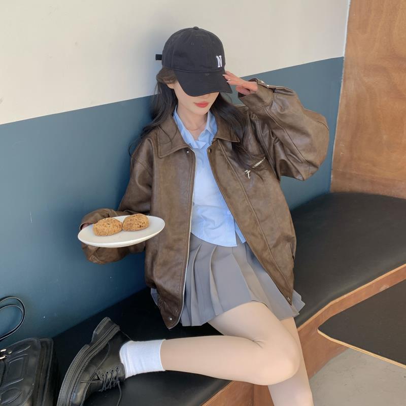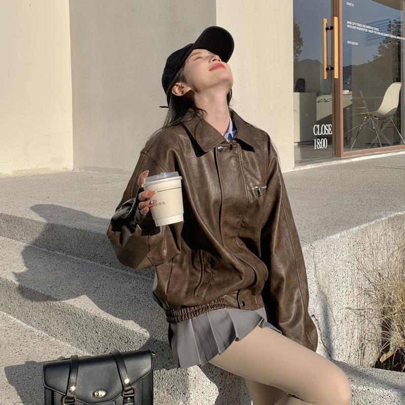 | nameOriginal | American Retro brown leather coat for women Spring and Autumn 2024 new women's sweet cool Maillard motorcycle leather coat |