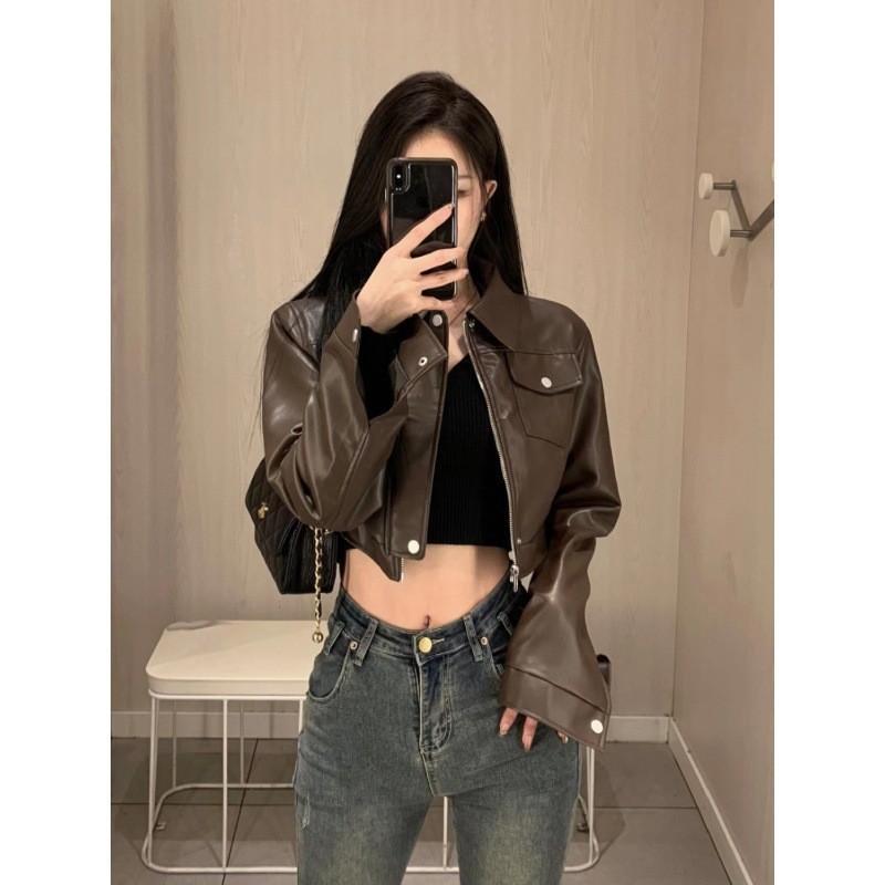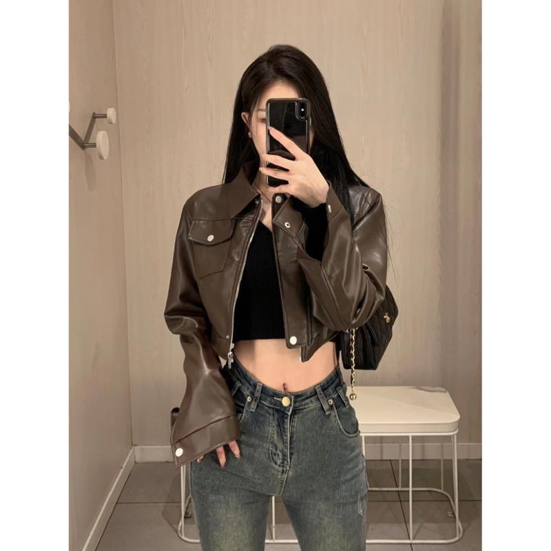 | nameOriginal | American Retro brown short leather coat women's autumn New Style hot girl style design sense motorcycle jacket top |