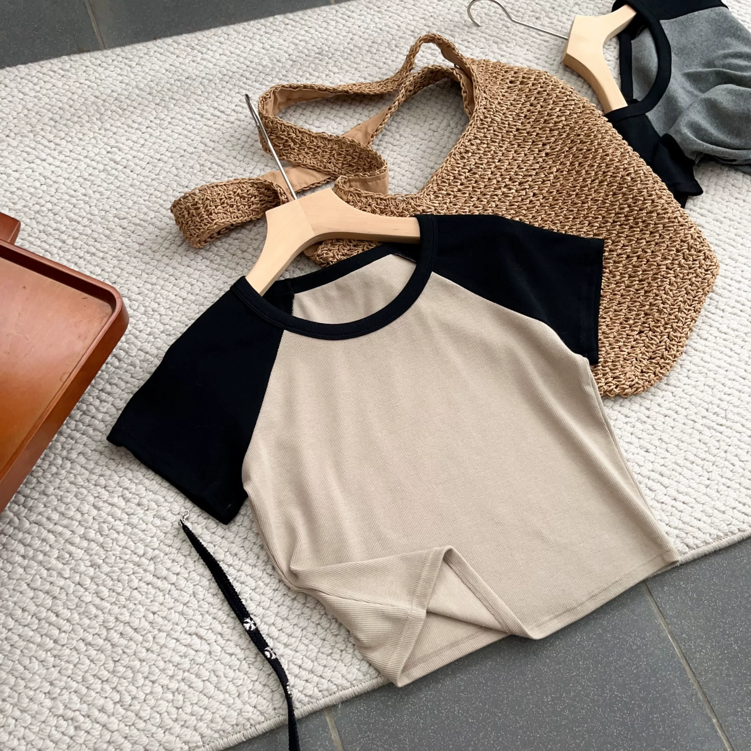 | nameOriginal | American retro casual short contrasting color splicing raglan T-shirt summer sweet and spicy short-sleeved tops for women |