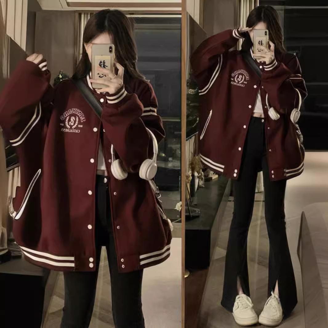 | nameOriginal | American Retro Couple Baseball Suit Coat Women's Spring and Autumn 2024 New Loose Embroidered Academy Style Jacket Top |