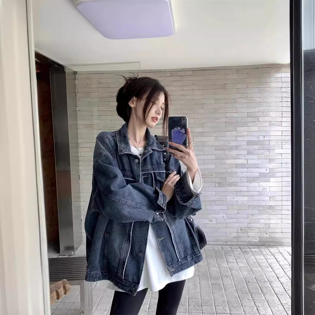 American retro Denim coat 2024 new retro fashion versatile loose Denim coat women’s fashion