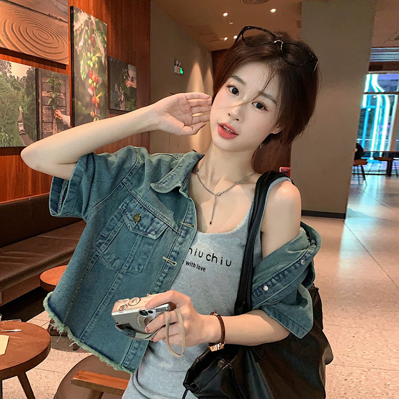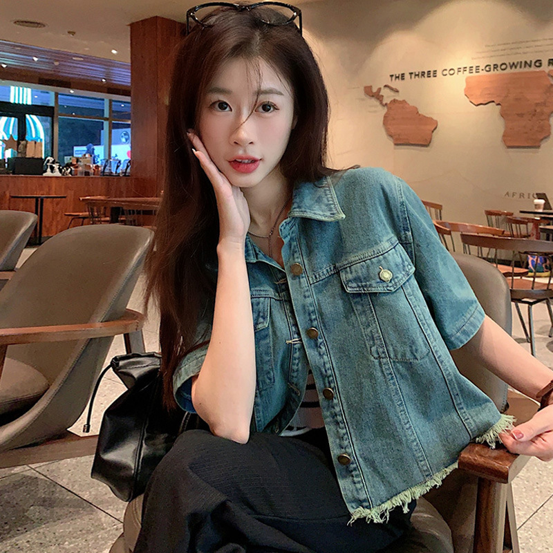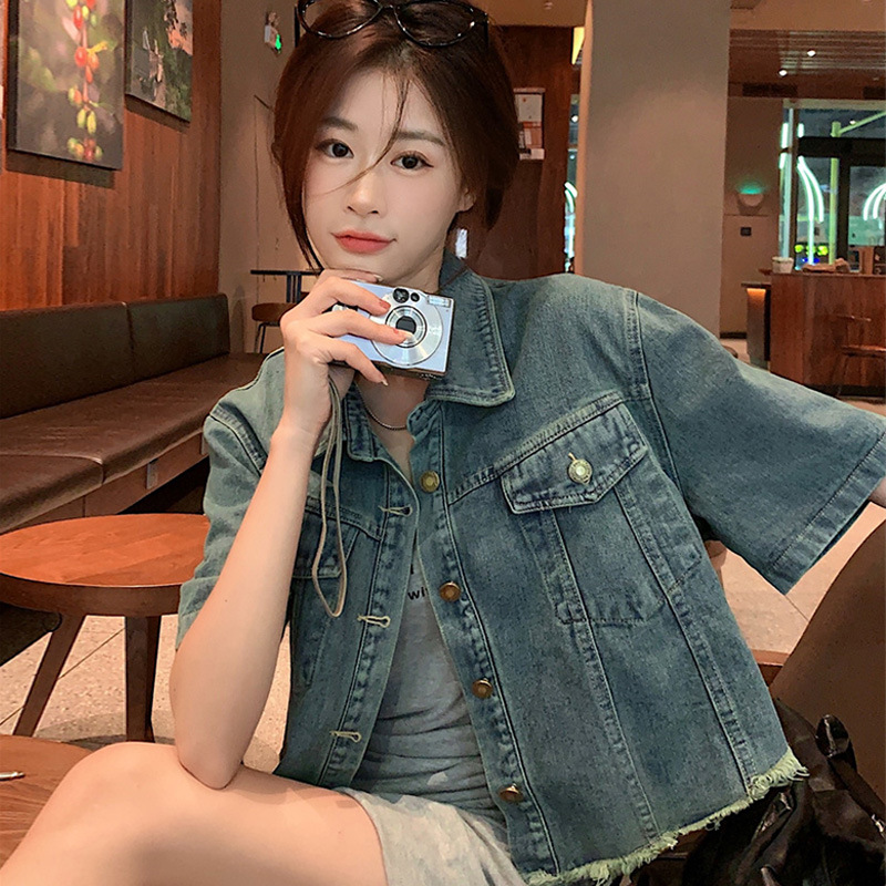 | nameOriginal | American retro Denim coat women's spring and autumn Hong Kong style niche shirt temperament slimming loose Denim short top fashion |