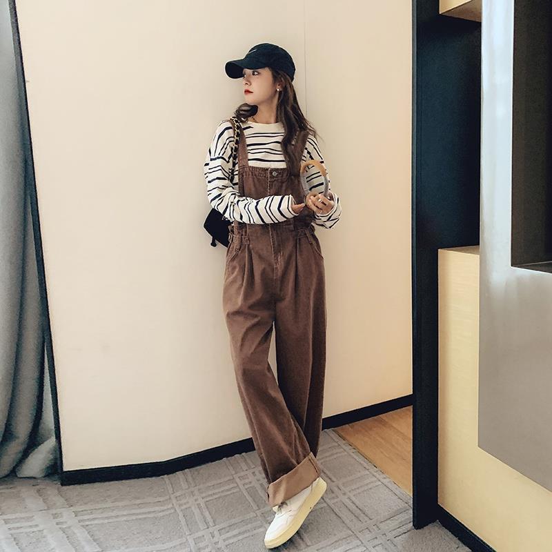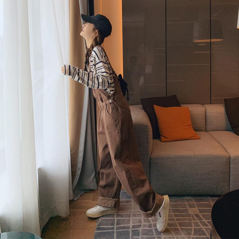 American retro Denim suspender pants for women 2024 Spring and Autumn new women's loose all-match casual straight wide-leg pants