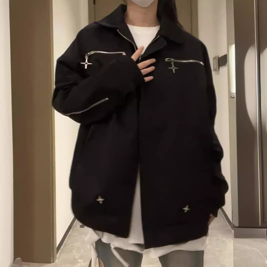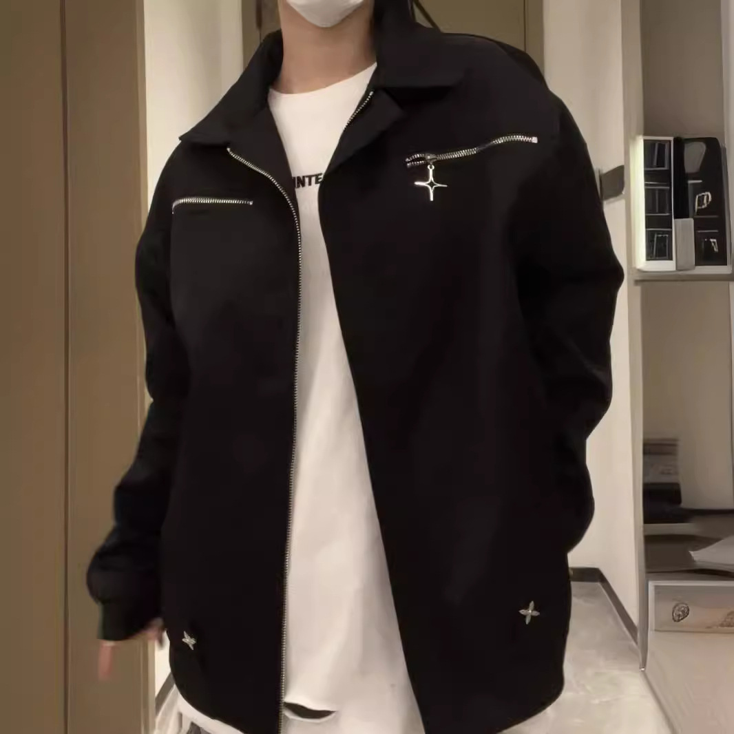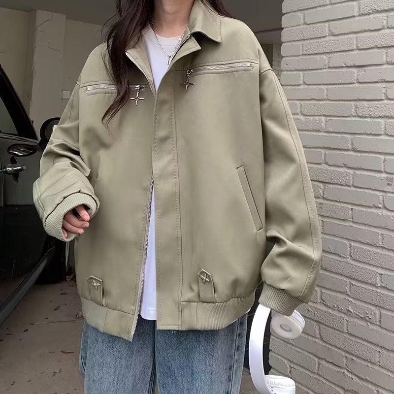 | nameOriginal | American retro design lapel jacket women's 2020 Spring New loose Hong Kong style chic baseball uniform |