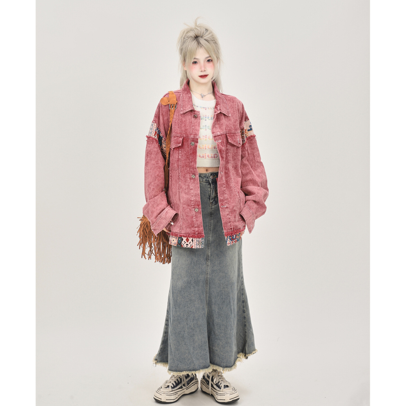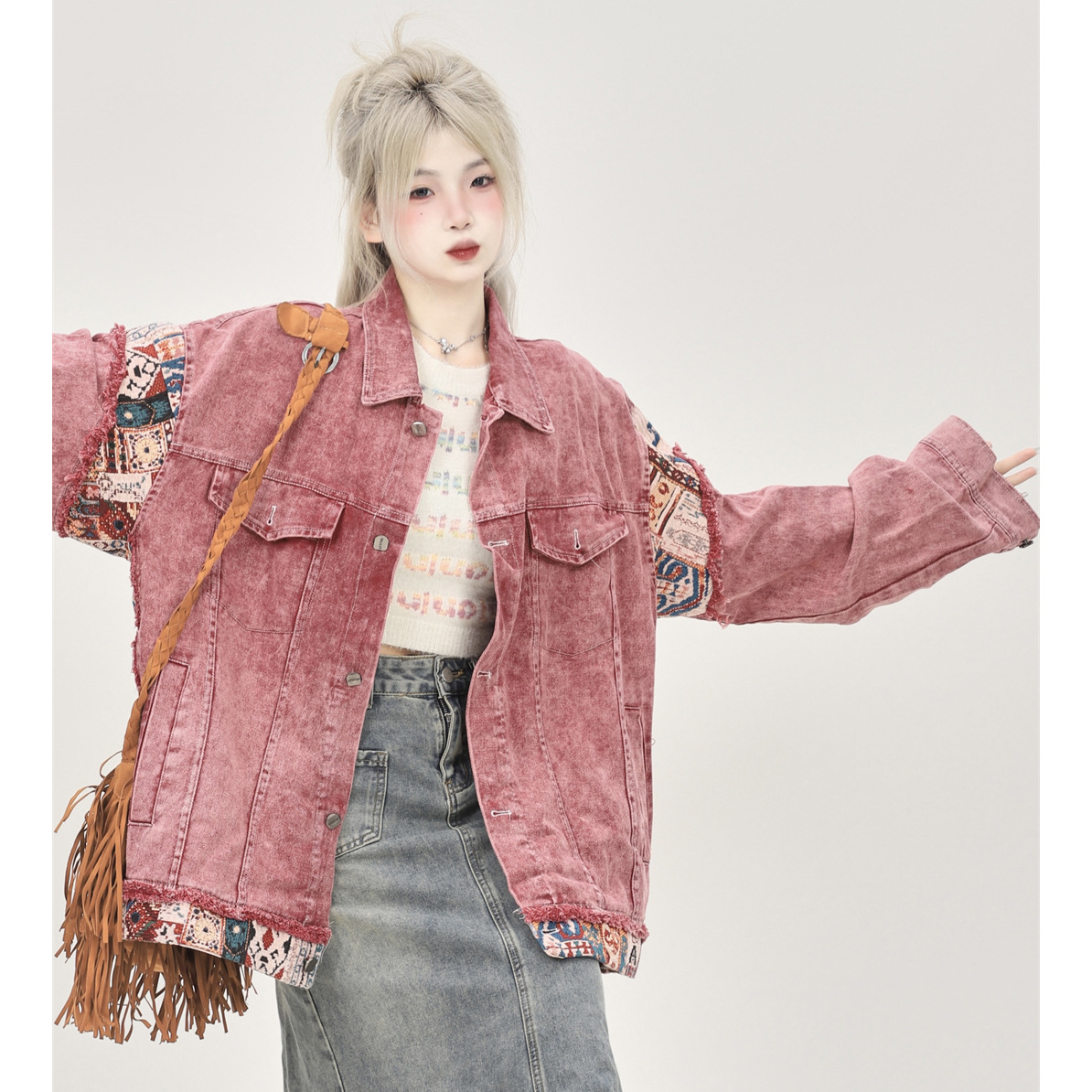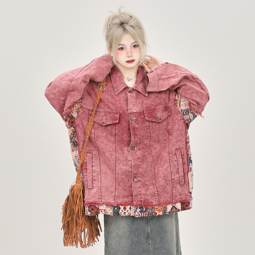 | nameOriginal | American retro dirty pink Denim coat for women Spring and Autumn 2023 loose design sense niche all-match jacket top |