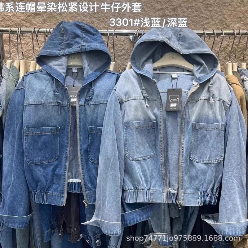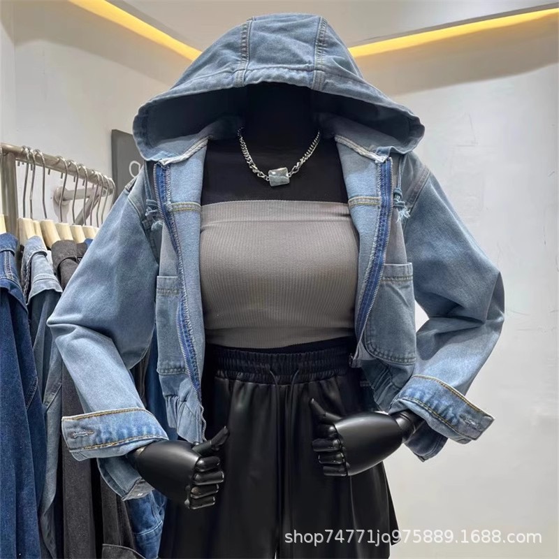 | nameOriginal | American retro distressed washed Denim coat women's short spring and autumn new design zipper hooded waist-tight jacket |