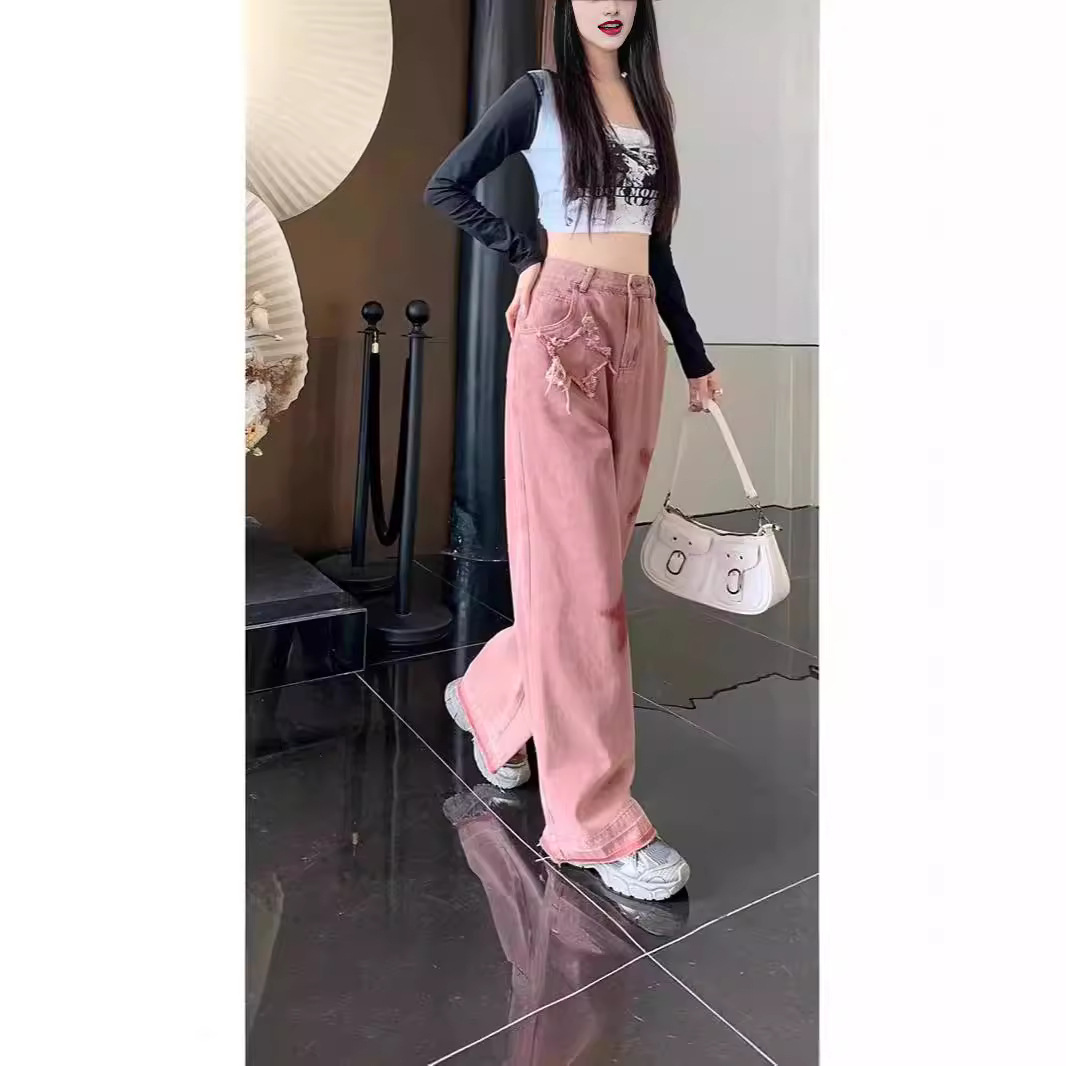 | nameOriginal | American Retro Five-Star Embroidered Contrast Color Fur-edged Jeans 2023 New Arrival Autumn All-match Loose Slimming Trousers for Women |
