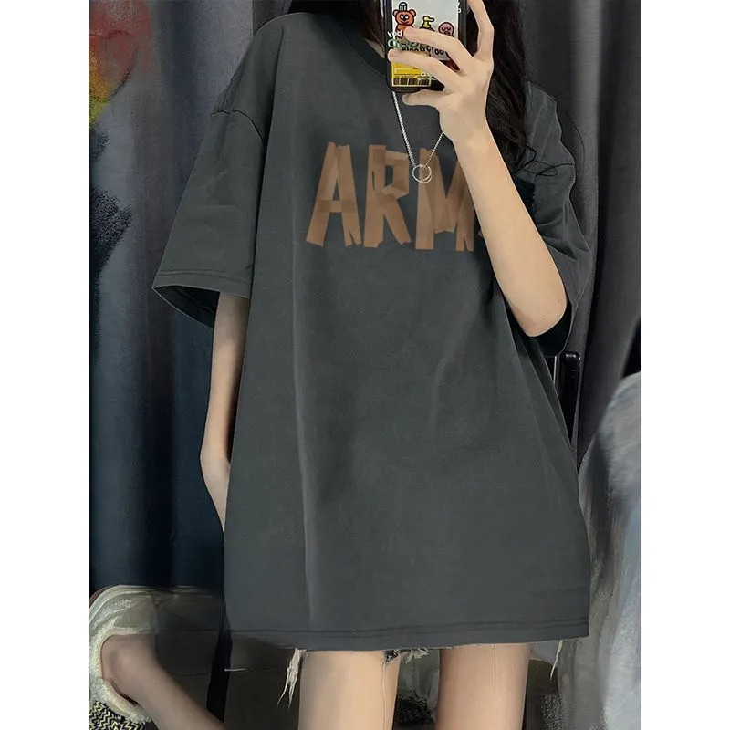 | nameOriginal | American retro high street fashion brand right shoulder pure cotton short-sleeved large size T-shirt for women Hong Kong style chic loose half-sleeved tops |