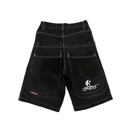 American retro hiphop hip-hop trendy printed straight-leg five-leg pants loose wide-leg casual denim shorts for men and women