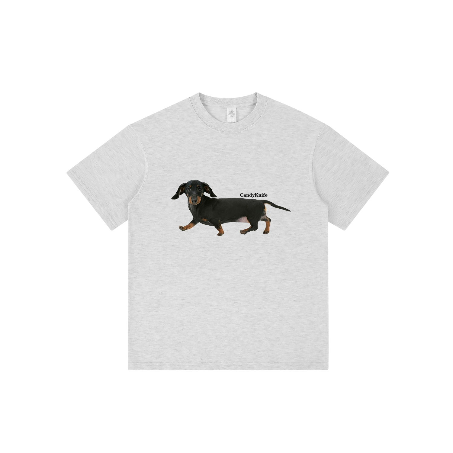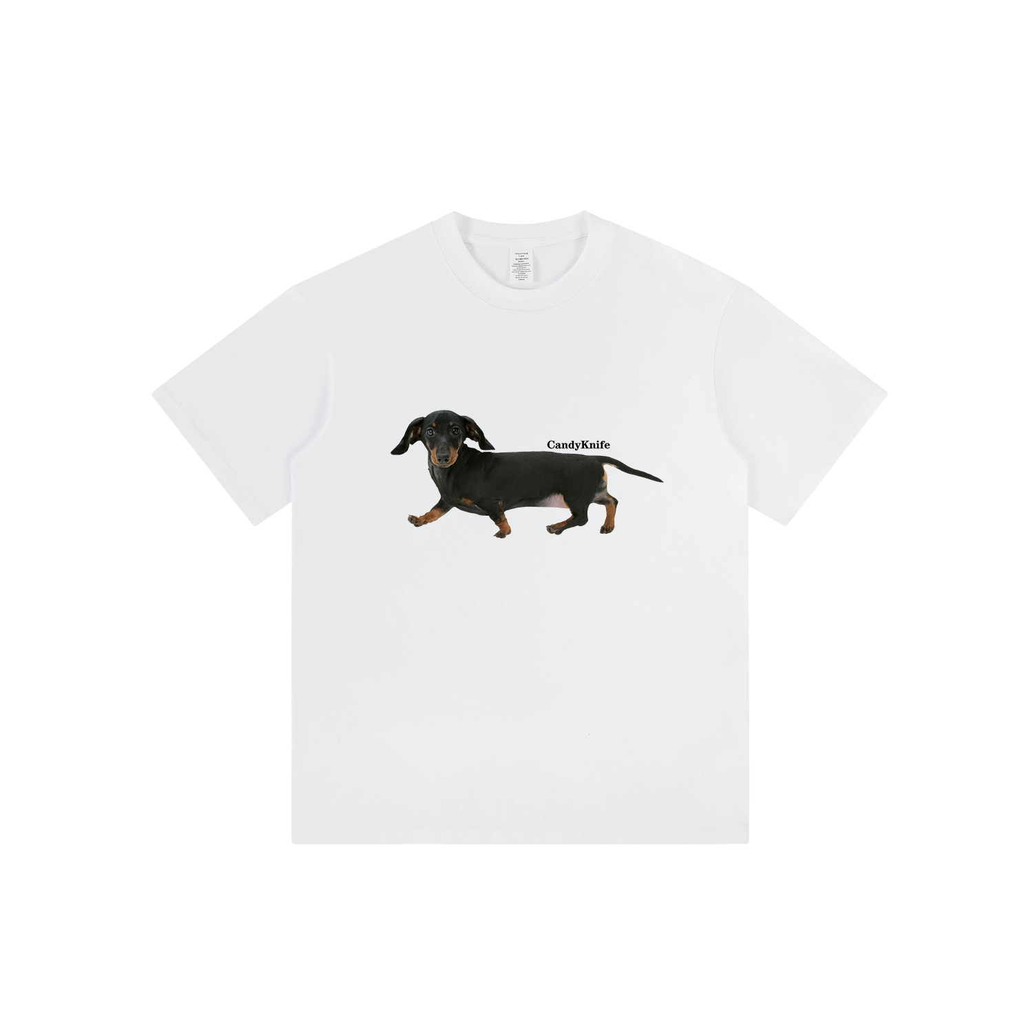 American retro INS original hip -hap sausage dog multi -color short -sleeved loose cotton T -shirt couple shirt round neck top T