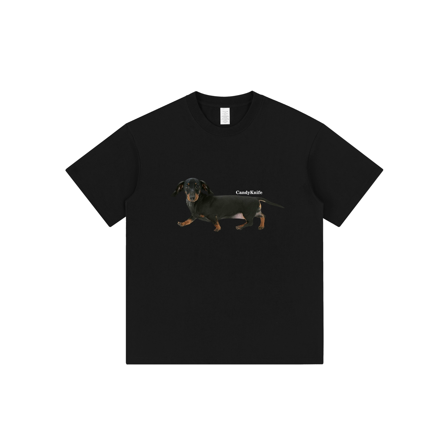 American retro ins original hip-hop dachshund multi-color short-sleeved loose cotton T-shirt couple shirt round neck top t