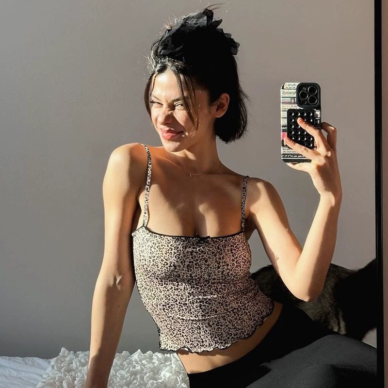 | nameOriginal | American retro lace stitching bow leopard print camisole 2024 summer new hot girl top trend |