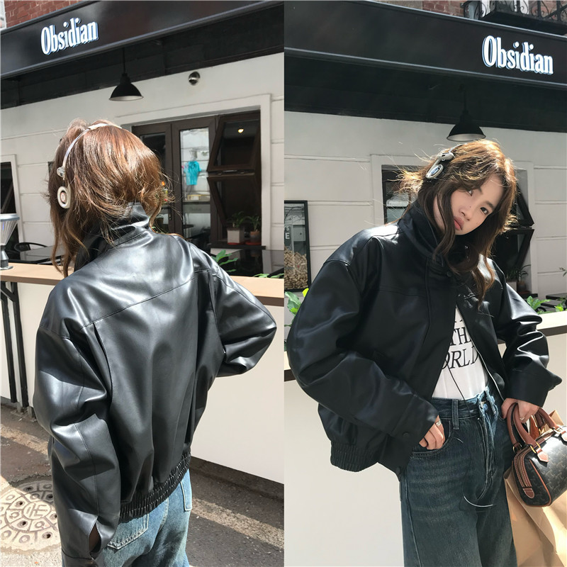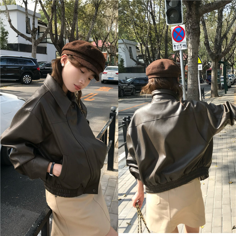 | nameOriginal | American retro lapel short leather coat women's sweet cool handsome casual zipper PU leather jacket motorcycle clothing |