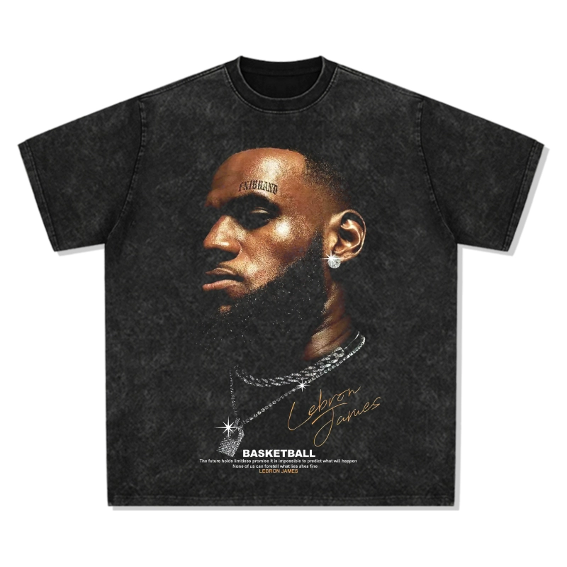 American retro LeBron James printed t-shirt men's basketball cotton loose casual T-shirt short-sleeved washed heavy