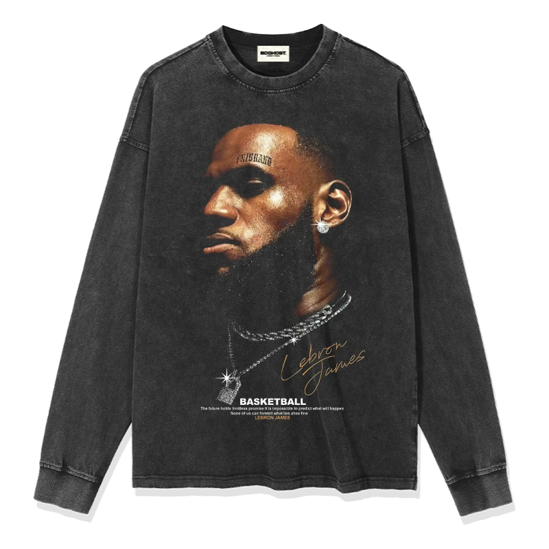 American retro LeBron James printed t-shirt men’s basketball cotton loose casual T-shirt short-sleeved washed heavy