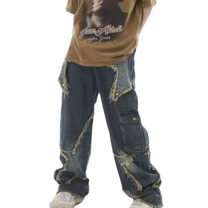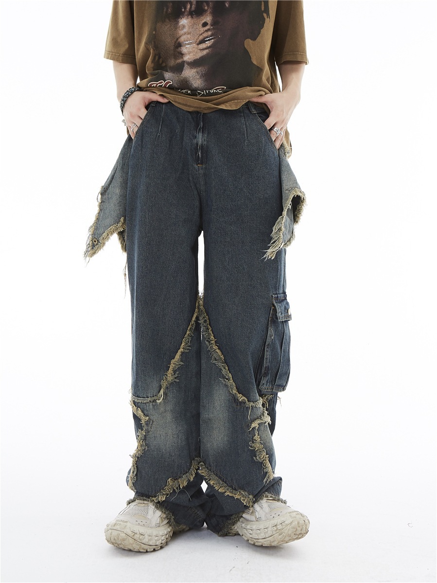 | nameOriginal | American retro loose jeans men's and women's spring and autumn design frayed mop trousers straight wide-leg pants fashion brand |