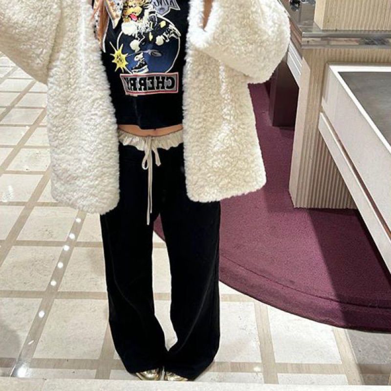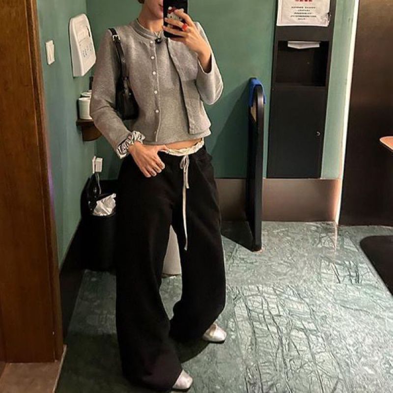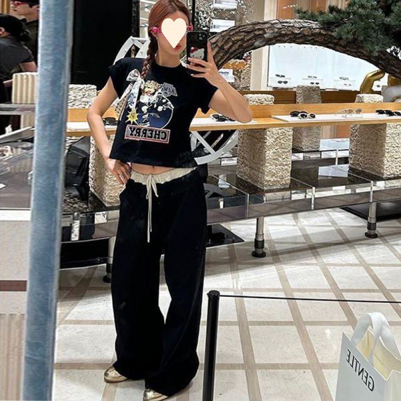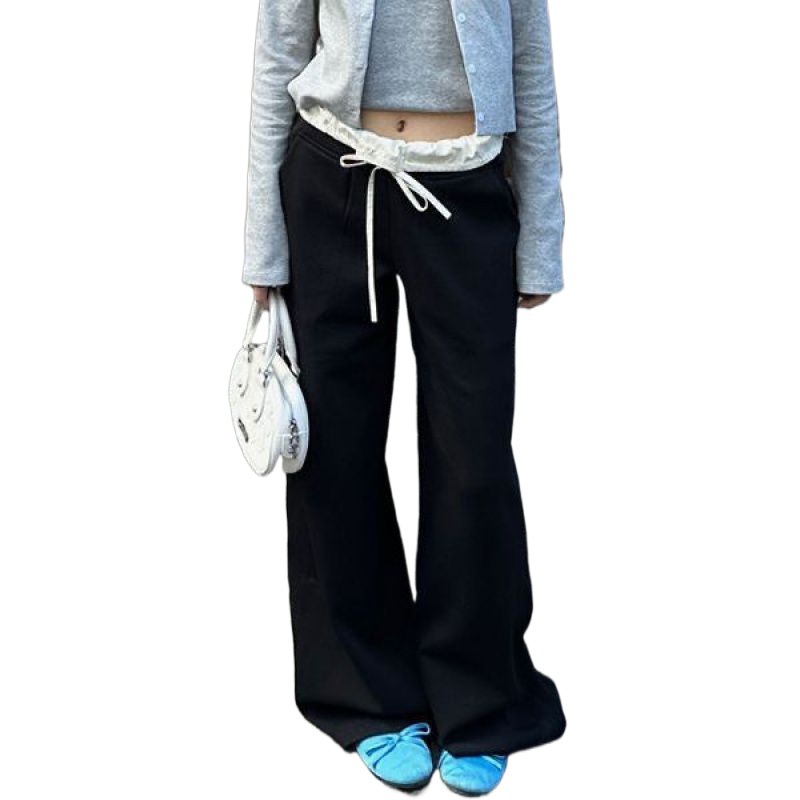| nameOriginal | American Retro New Stitching Contrast Color Waist Casual Pants Black Sports All-match Loose Straight Leg Wide Leg Pants Women's Trendy |