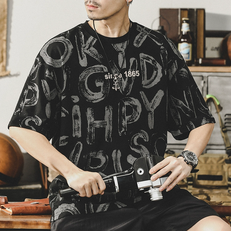 | nameOriginal | American retro new t-shirt men's short-sleeved summer fashion trend printed plus size fat man's loose top |