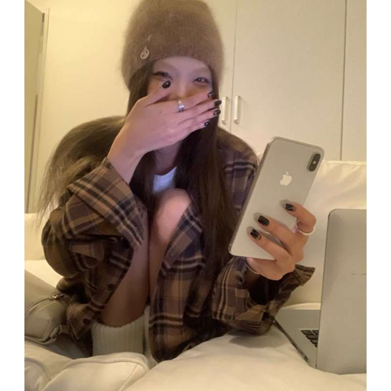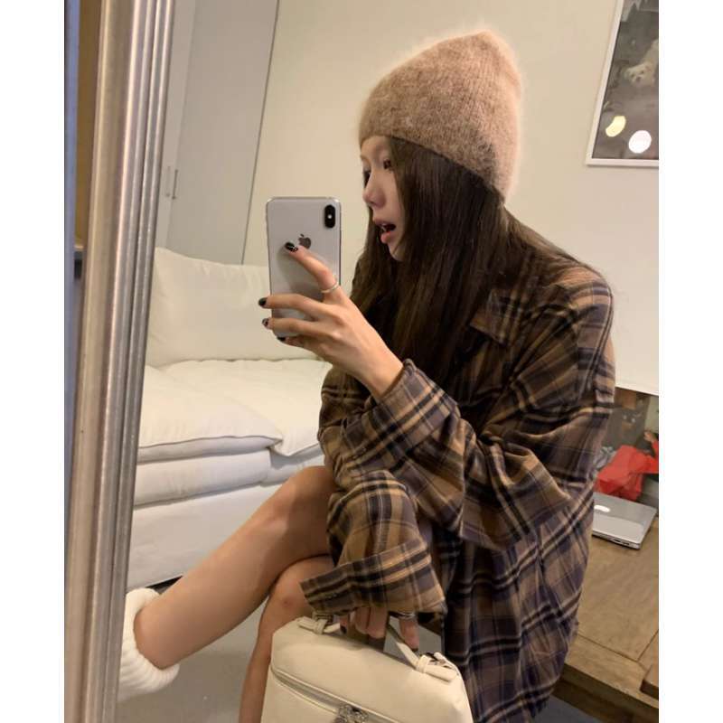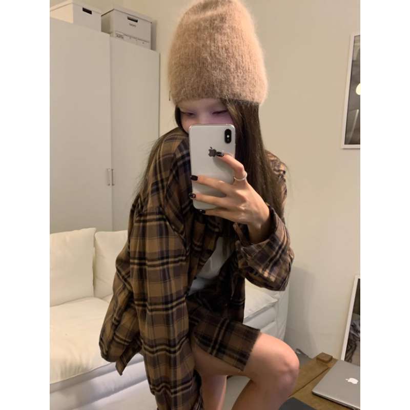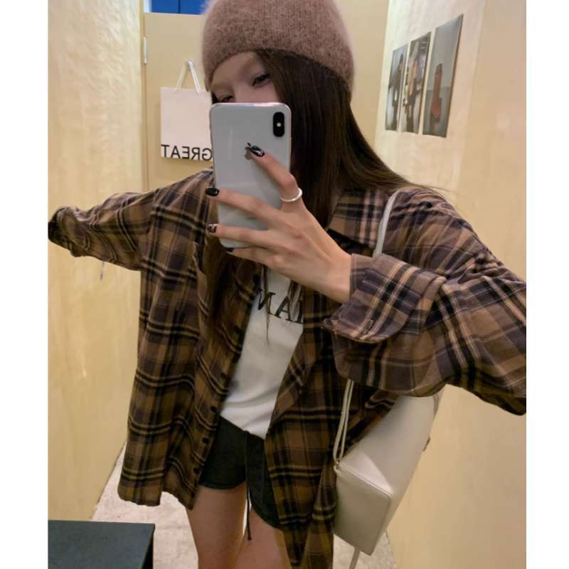 American Retro Plaid Shirt Jacket Women’s Spring and Autumn New Lazy Style Loose Shirt Mid-length Top