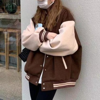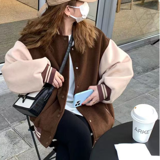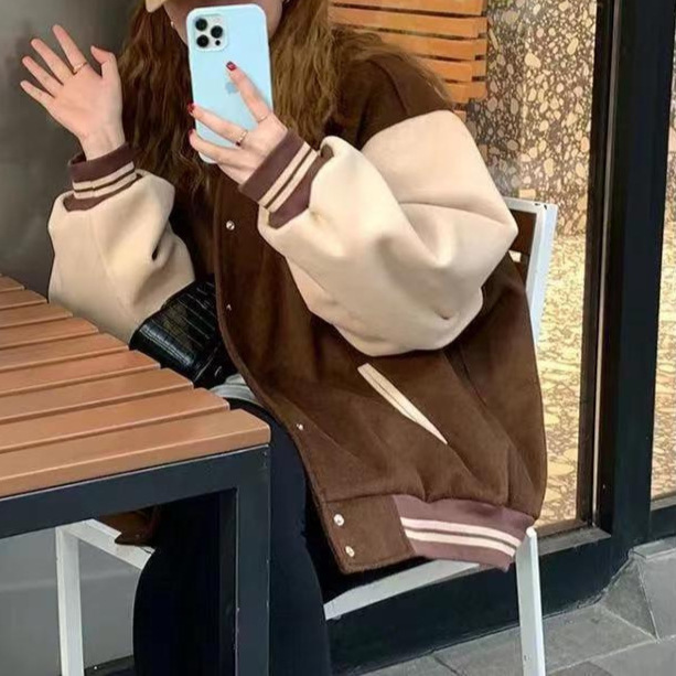 American retro preppy style baseball uniform women’s 2020 autumn and winter New stitching fleece jacket couple jacket top