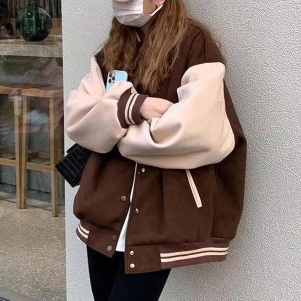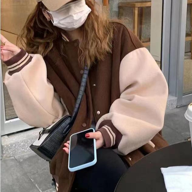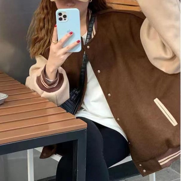 American retro preppy style baseball uniform women's 2020 autumn and winter New stitching fleece jacket couple jacket top