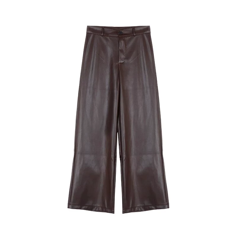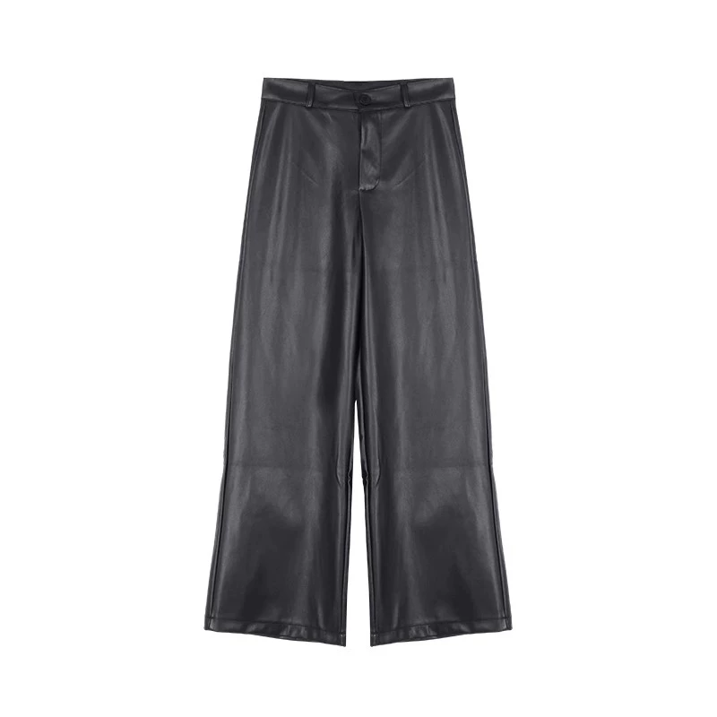American Retro PU Leather Large Size Fat MM High Waist Casual Pants
