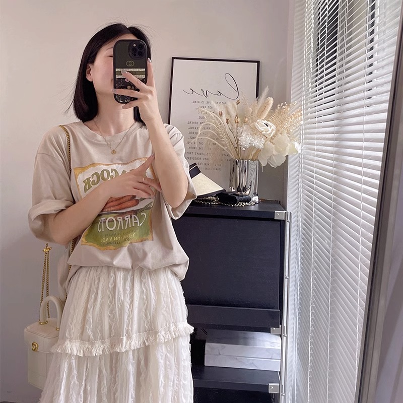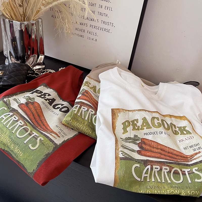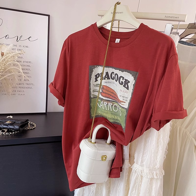 American Retro Red Half-sleeved T-shirt Women’s Summer Design Sense Niche Short-sleeved Shoulder T-shirt Top D