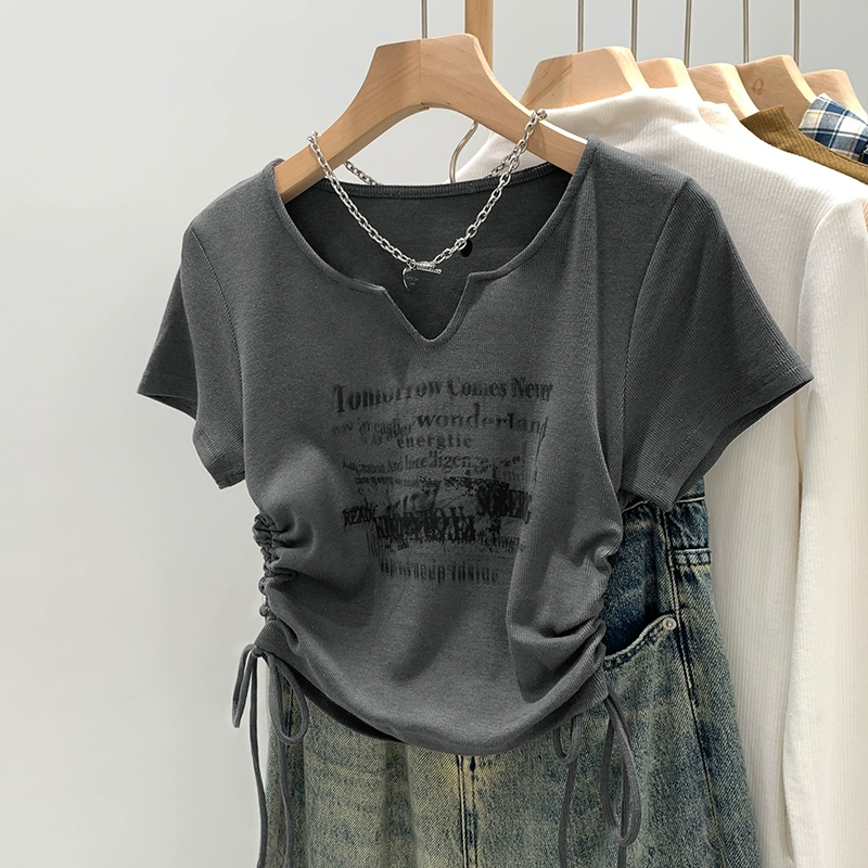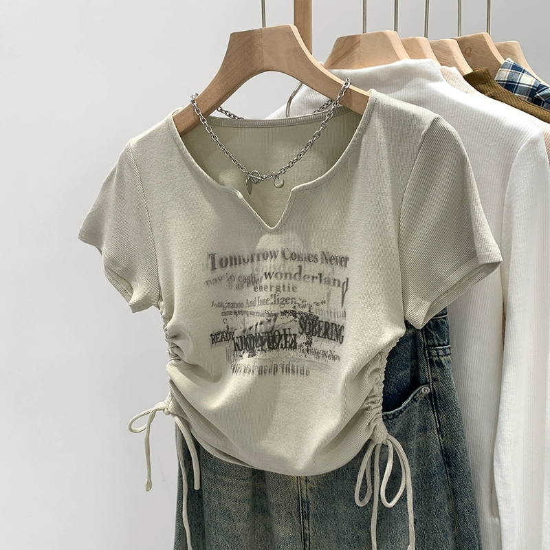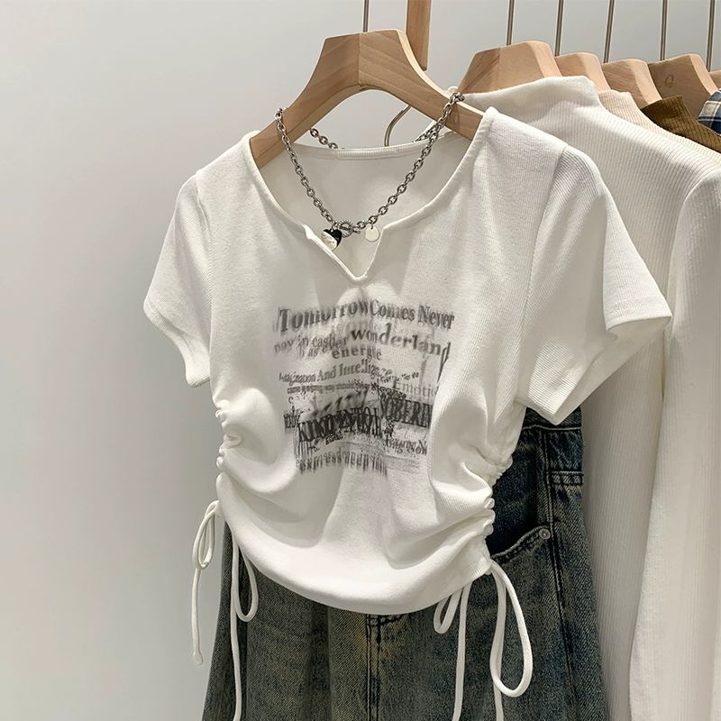 | nameOriginal | American retro right shoulder printed summer waist T-shirt |