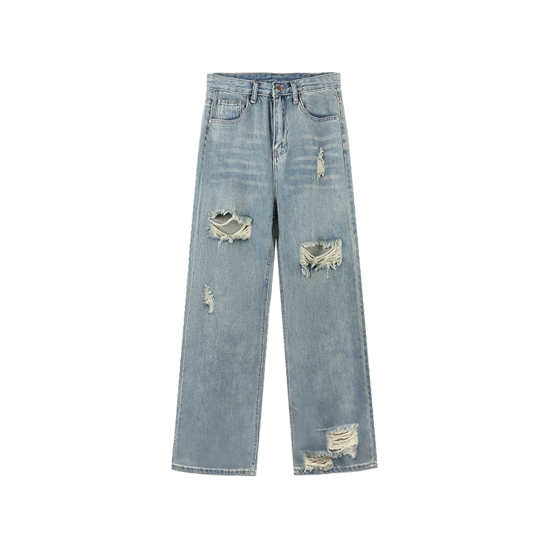 | nameOriginal | American retro ripped loose spring high waist trousers |