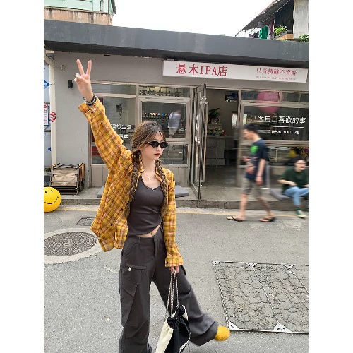 | nameOriginal | American retro salt three-piece suit plaid shirt |