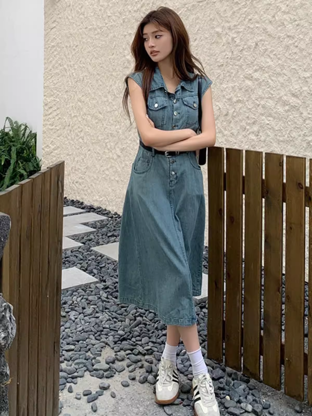| nameOriginal | American retro sleeveless spring over-the-knee denim dress |