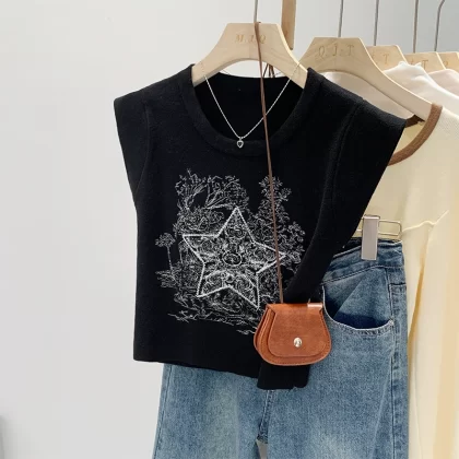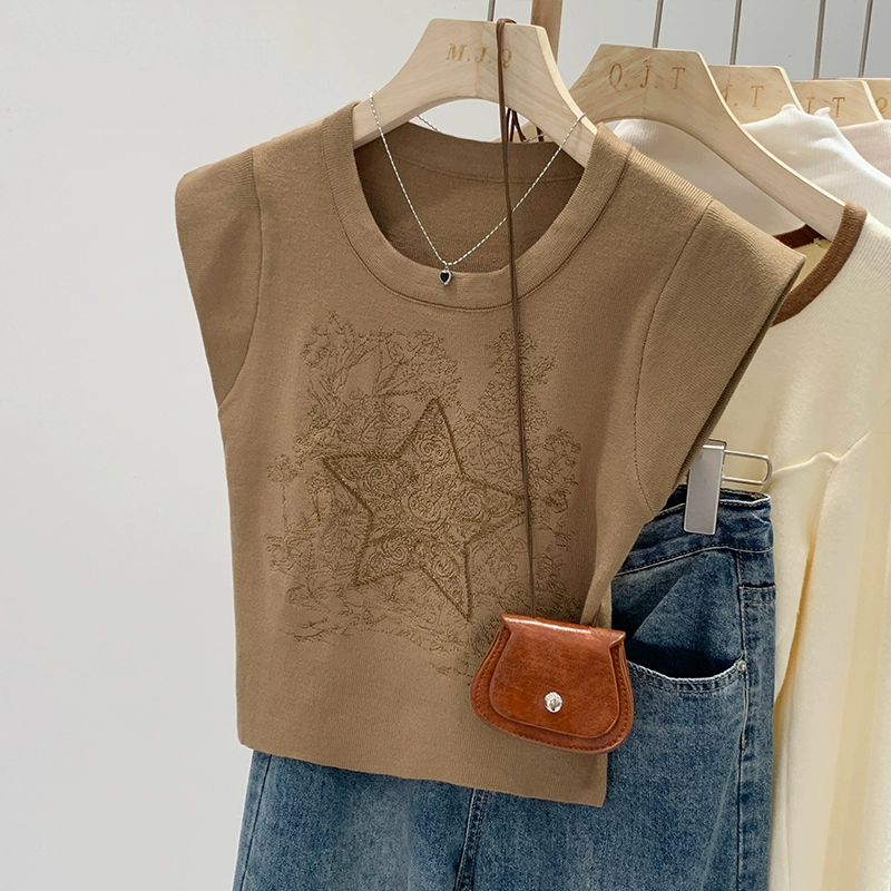 | nameOriginal | American retro sleeveless waistcoat with stars knitted embroidery |