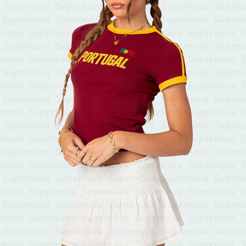 | nameOriginal | American retro sports hottie South American style women's short-sleeved round neck millennium abg letter contrast printing y2k T-shirt |