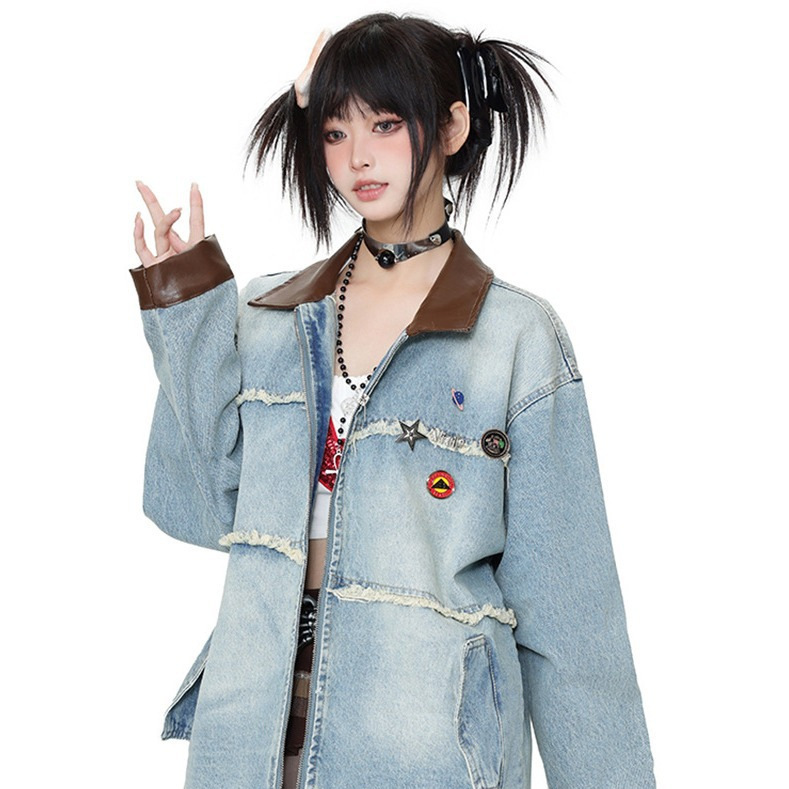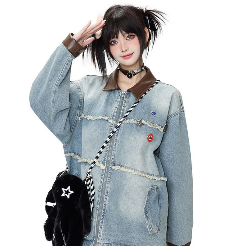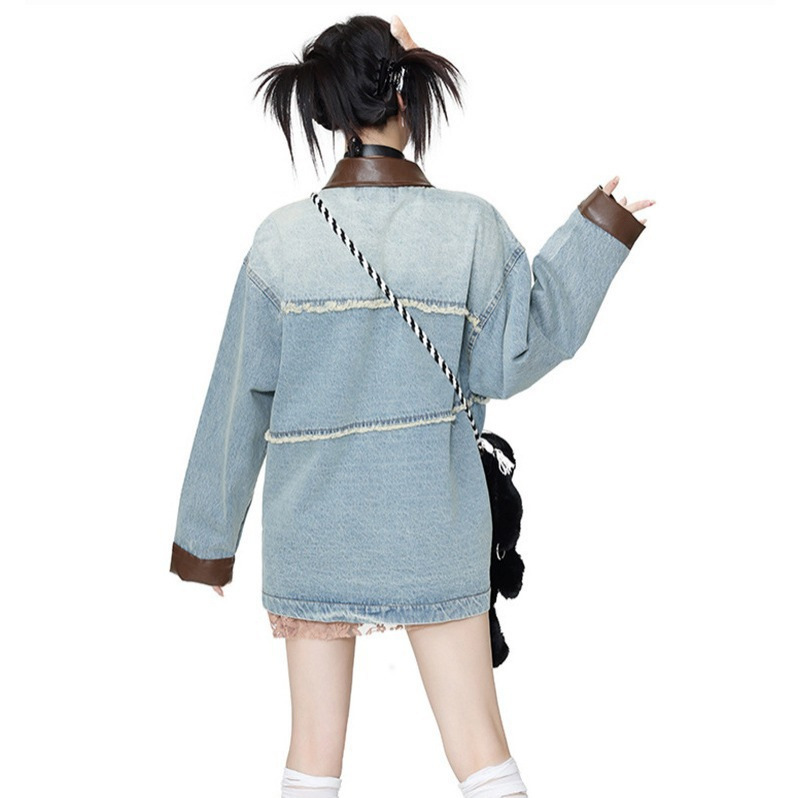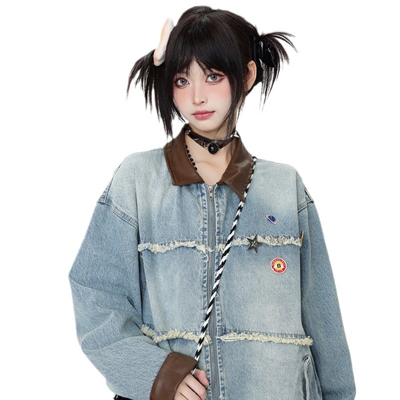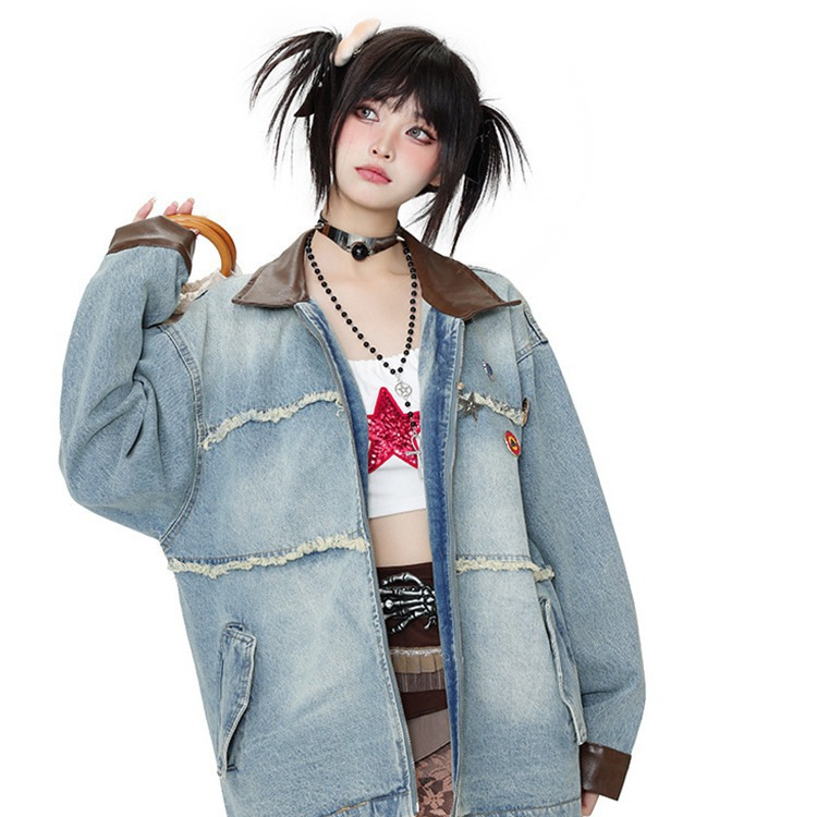| nameOriginal | American retro stitching lapel Denim coat women's spring and autumn new high sense jacket baseball suit a generation of hair |