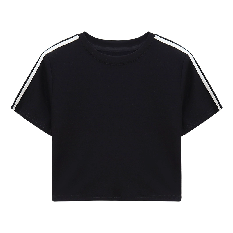 American retro suit short-sleeved T-shirt drawstring ins stripes
