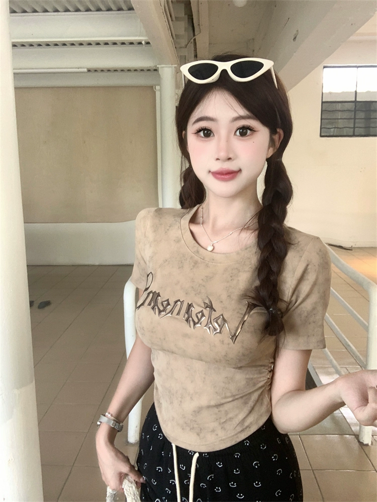 | nameOriginal | American retro summer right shoulder design short-sleeved T-shirt |
