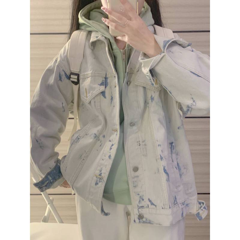 | nameOriginal | American retro tie-dyed washed Denim coat for women Spring and Autumn 2023 New loose small shirt long sleeve top |