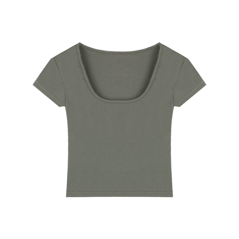 | nameOriginal | American retro U-neck gray tight-fitting navel-baring short-sleeved T-shirt |