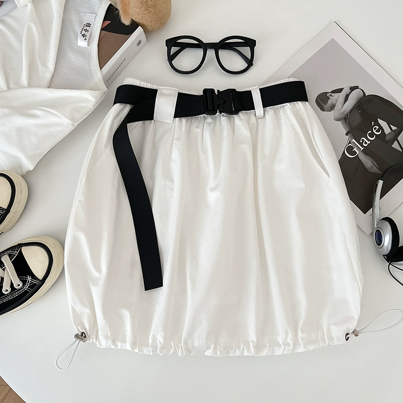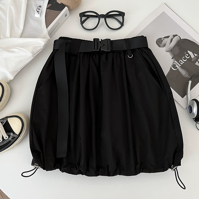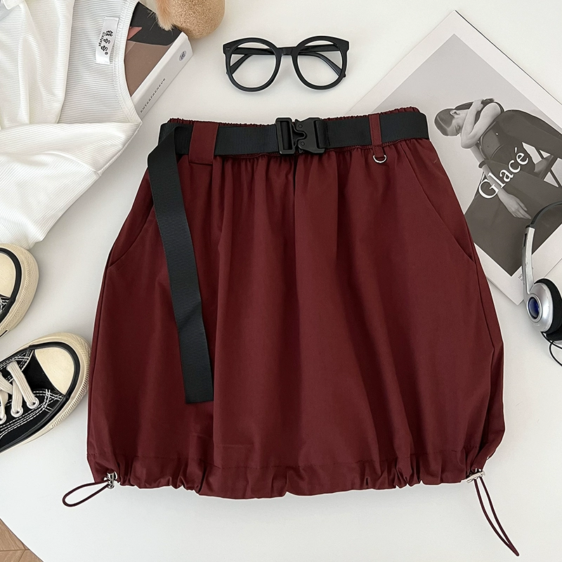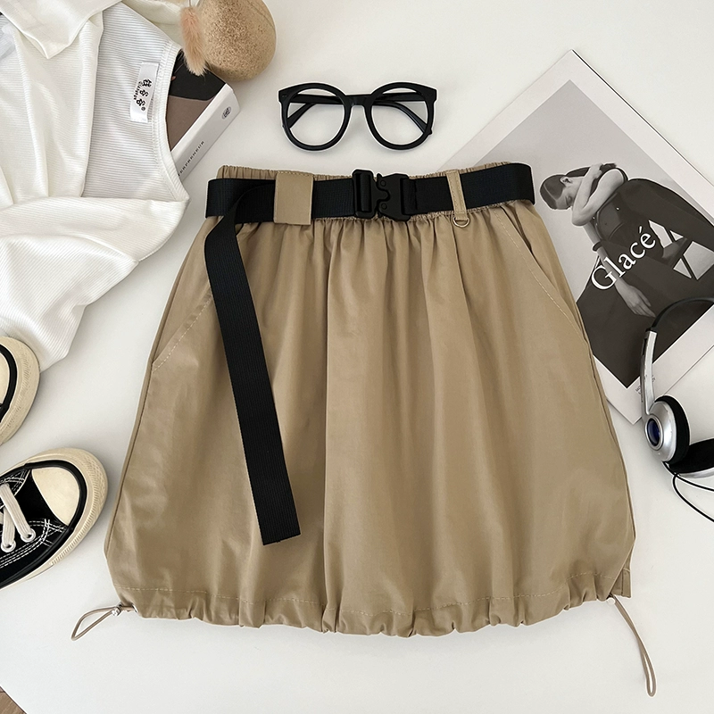 | nameOriginal | American retro versatile elastic waist drawstring workwear skirt anti-exposure short skirt A-line skirt for women with belt summer |