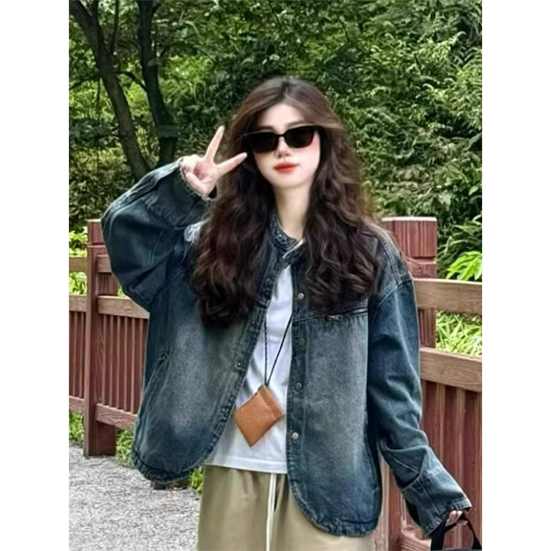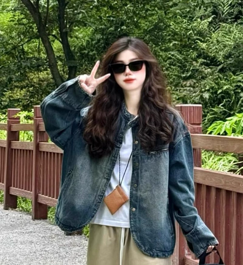 | nameOriginal | American retro washed distressed denim jacket for women autumn design stand-up collar short jacket casual loose top |